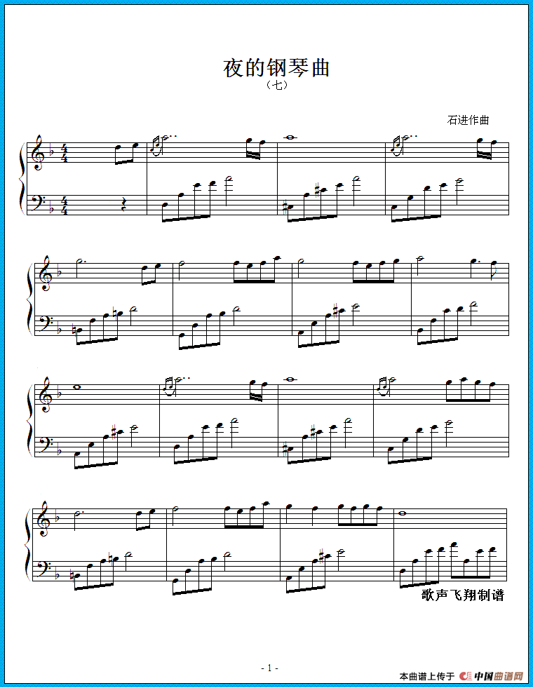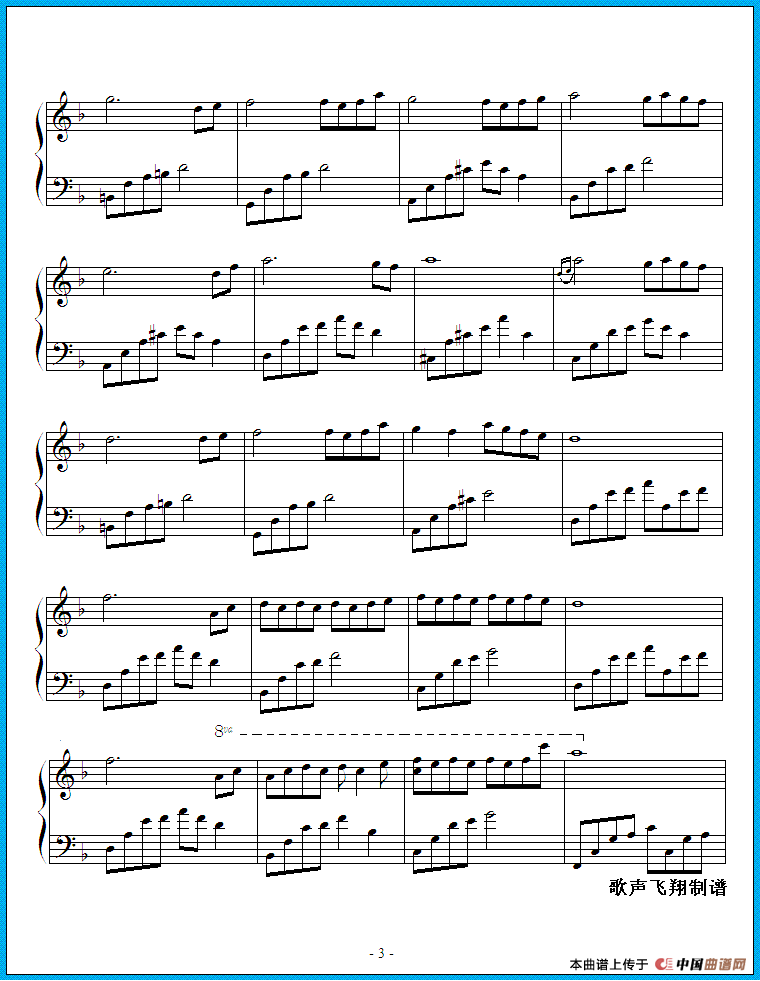 在曲谱图片上单击右键,选择"图片另存为..."即可将曲谱保存到您的电脑中,打印时候可将图片插入到WORD中,调整合适大小打印即可。