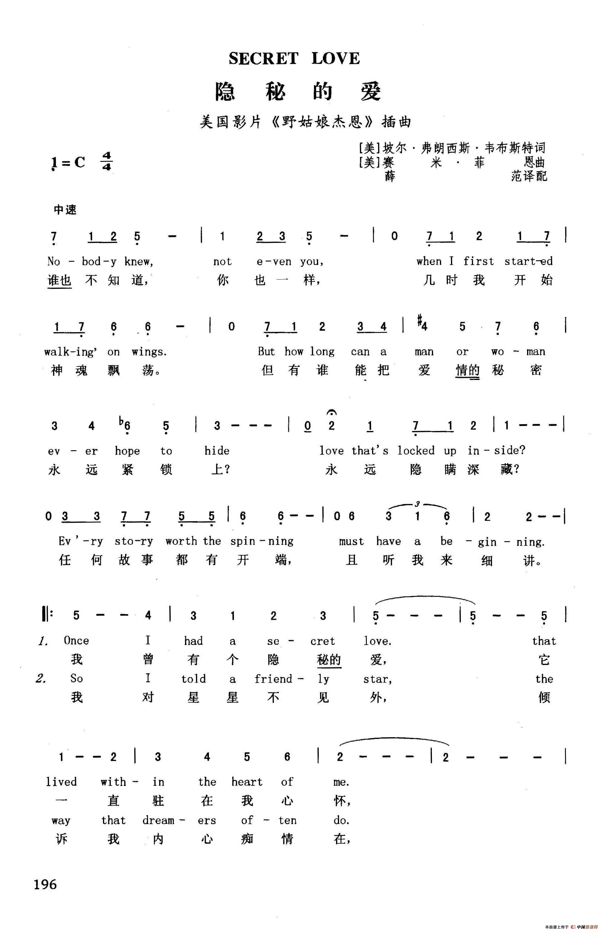隐秘的爱(英汉)(美国影片《野姑娘杰恩》插曲)