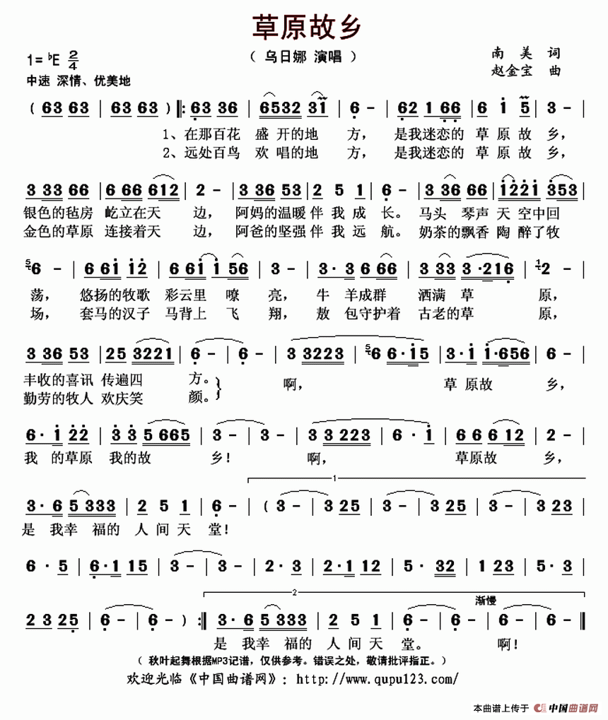 关于《草原故乡》曲谱的评论