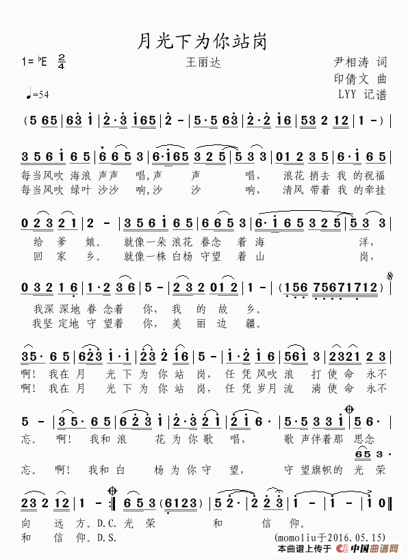 关于《月光下为你站岗》曲谱的评论