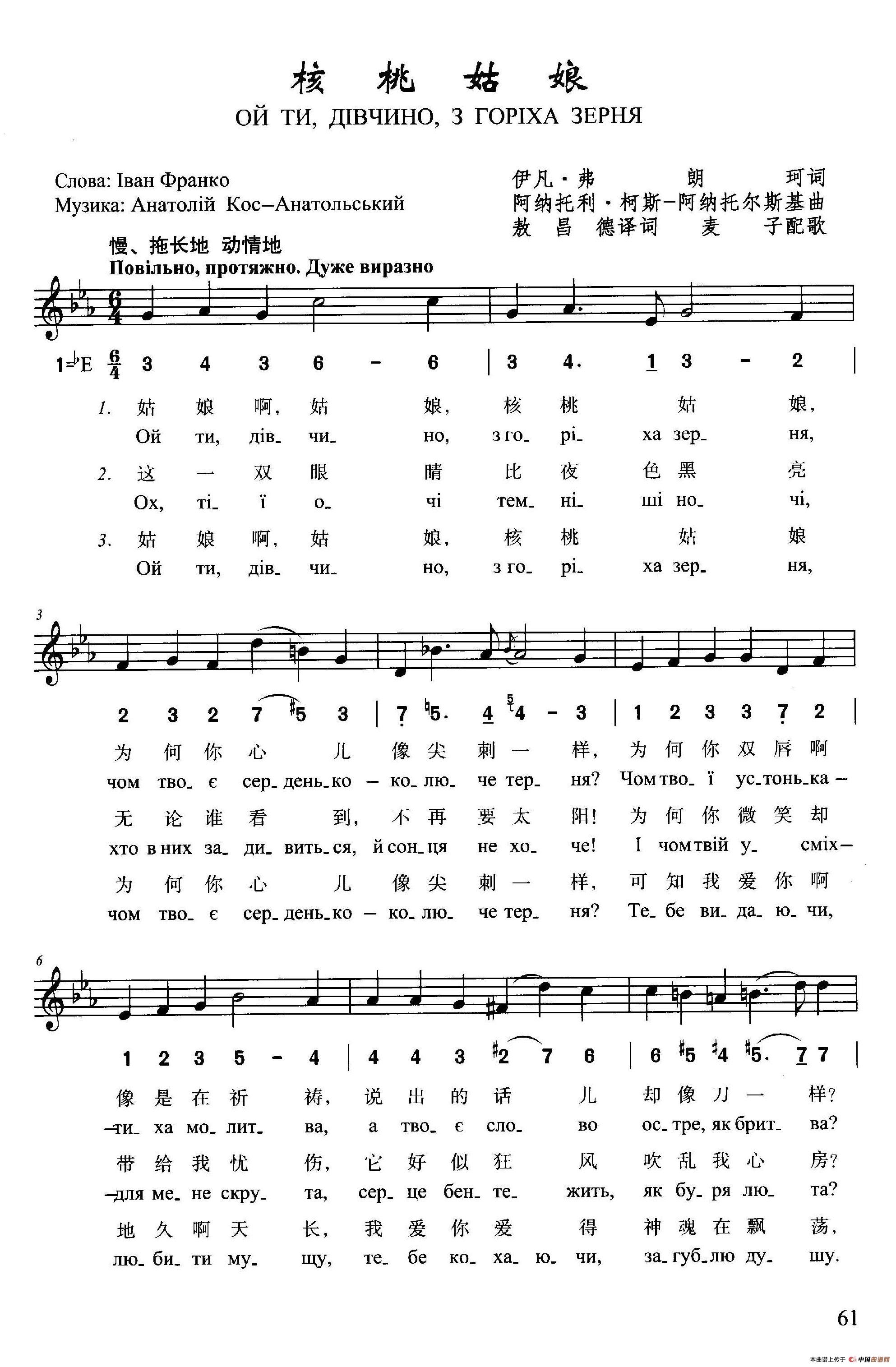 来源:《乌克兰歌曲选集》(双语版) 上传:瓦莲金娜