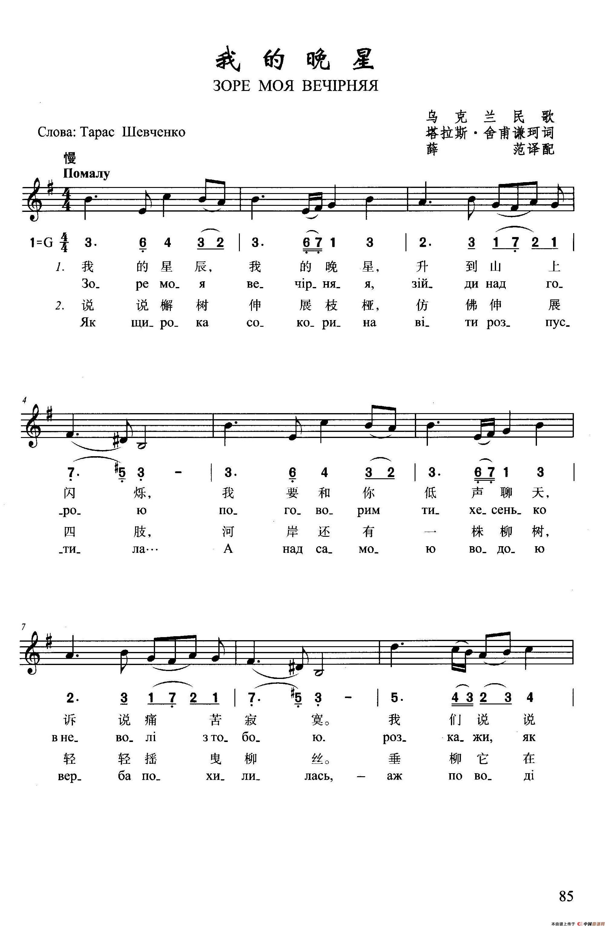 来源:《乌克兰歌曲选集》(双语版) 上传:瓦莲金娜