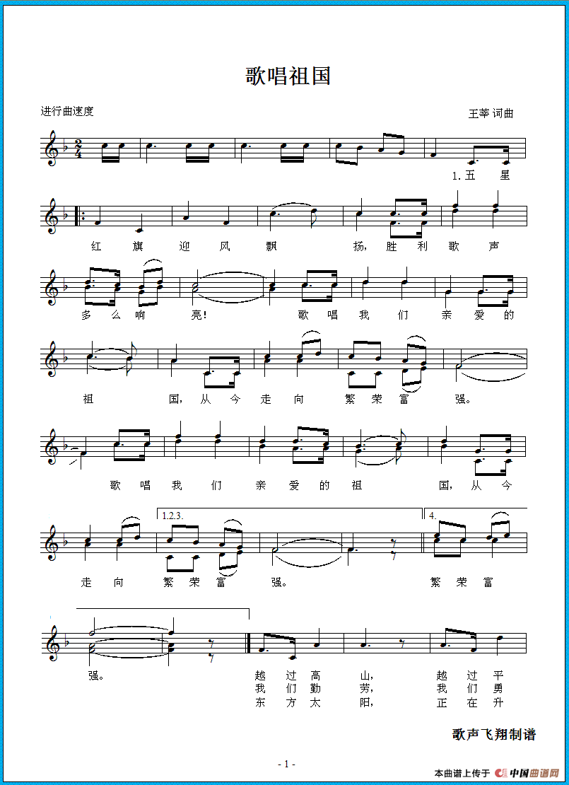提示:在曲谱图片上单击右键,选择"图片另存为..."即可将曲谱保存到您的电脑中,打印时候可将图片插入到WORD中,调整合适大小打印即可。