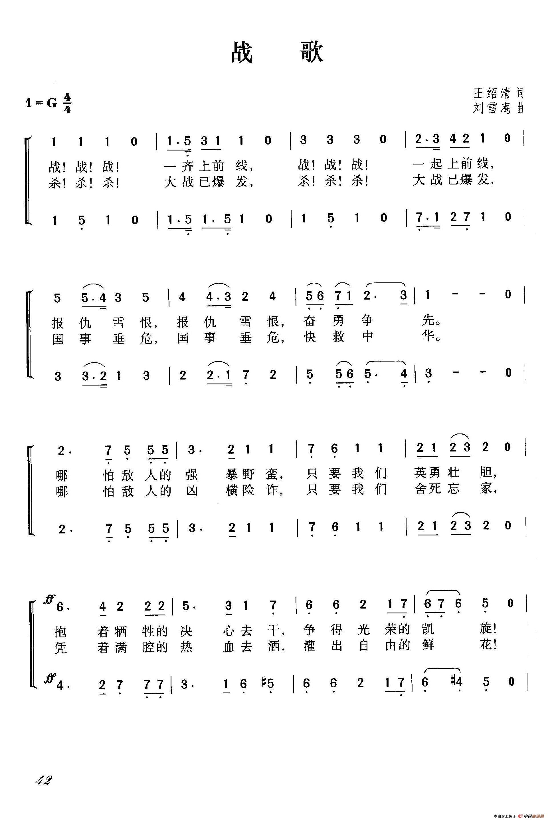 《战歌》文本歌词