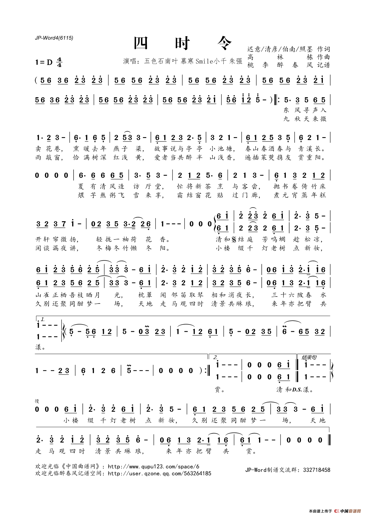 作词:迟意、清彦、伯南、照墨 作曲:高林栋 演唱(奏):smile_小千、五色石南叶、朱强、慕寒 来源:桃李醉春风记谱 上传:桃李醉春风