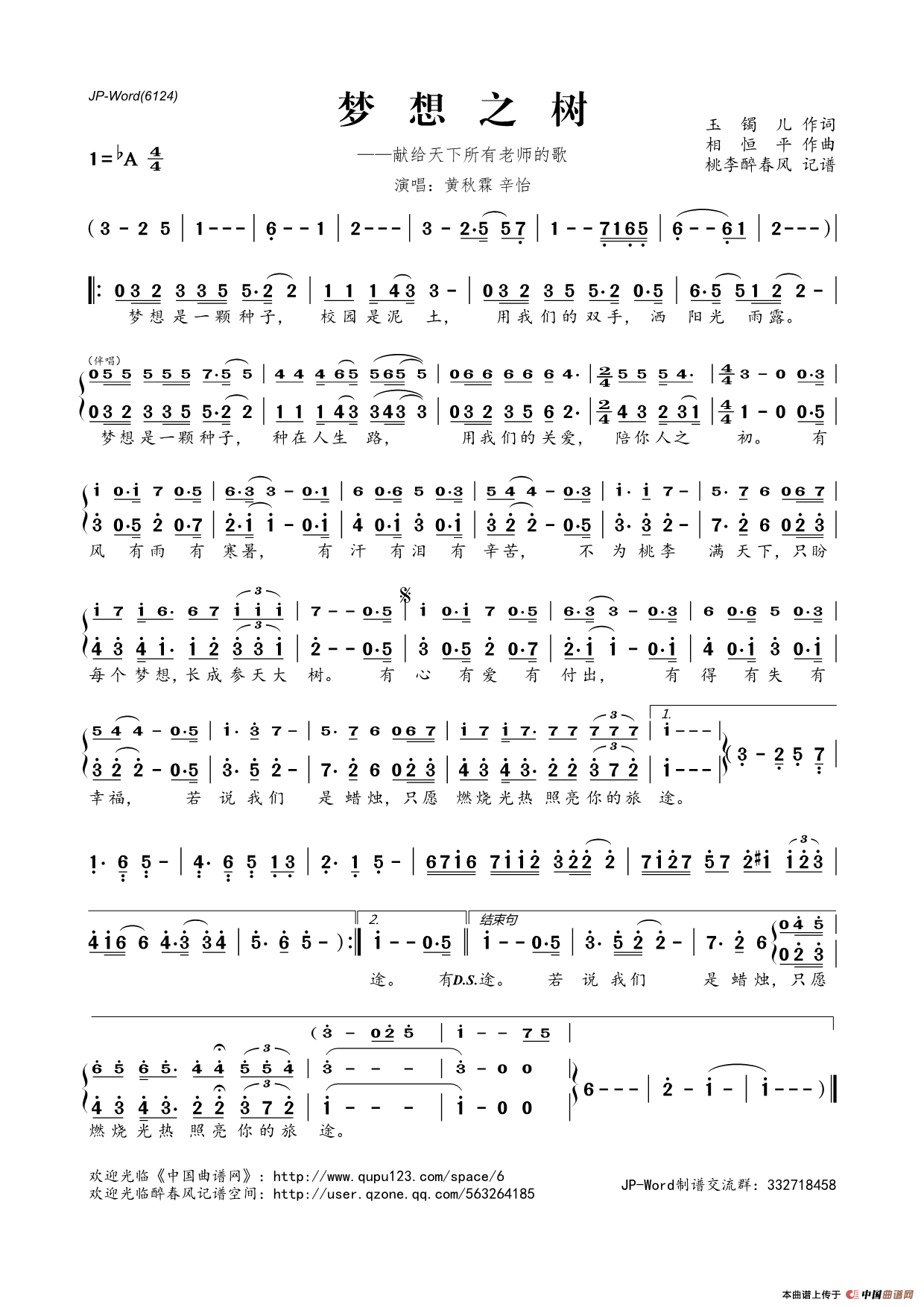 中国曲谱网感谢词作者玉镯儿提供原版伴奏!