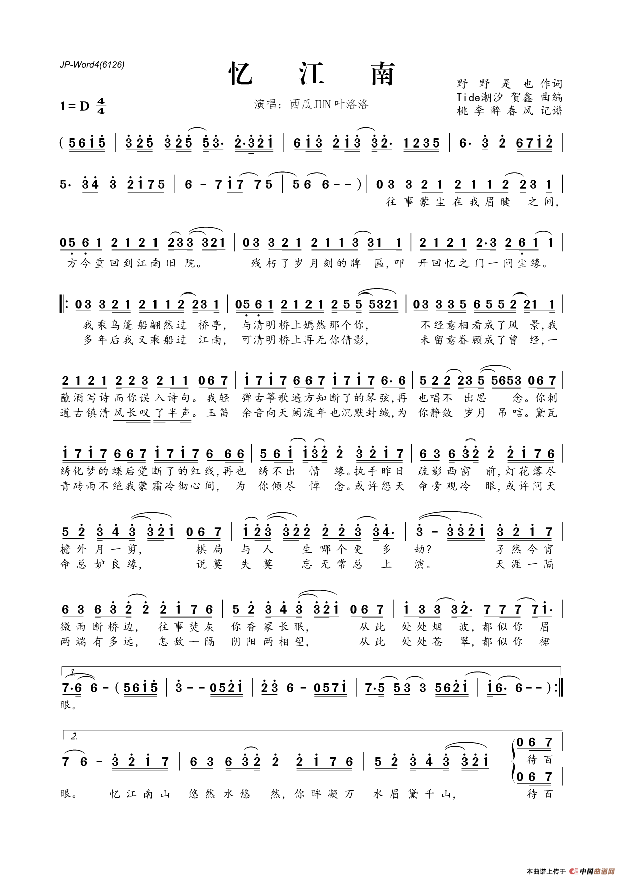 忆江南(野野是也词 潮汐 贺鑫曲)