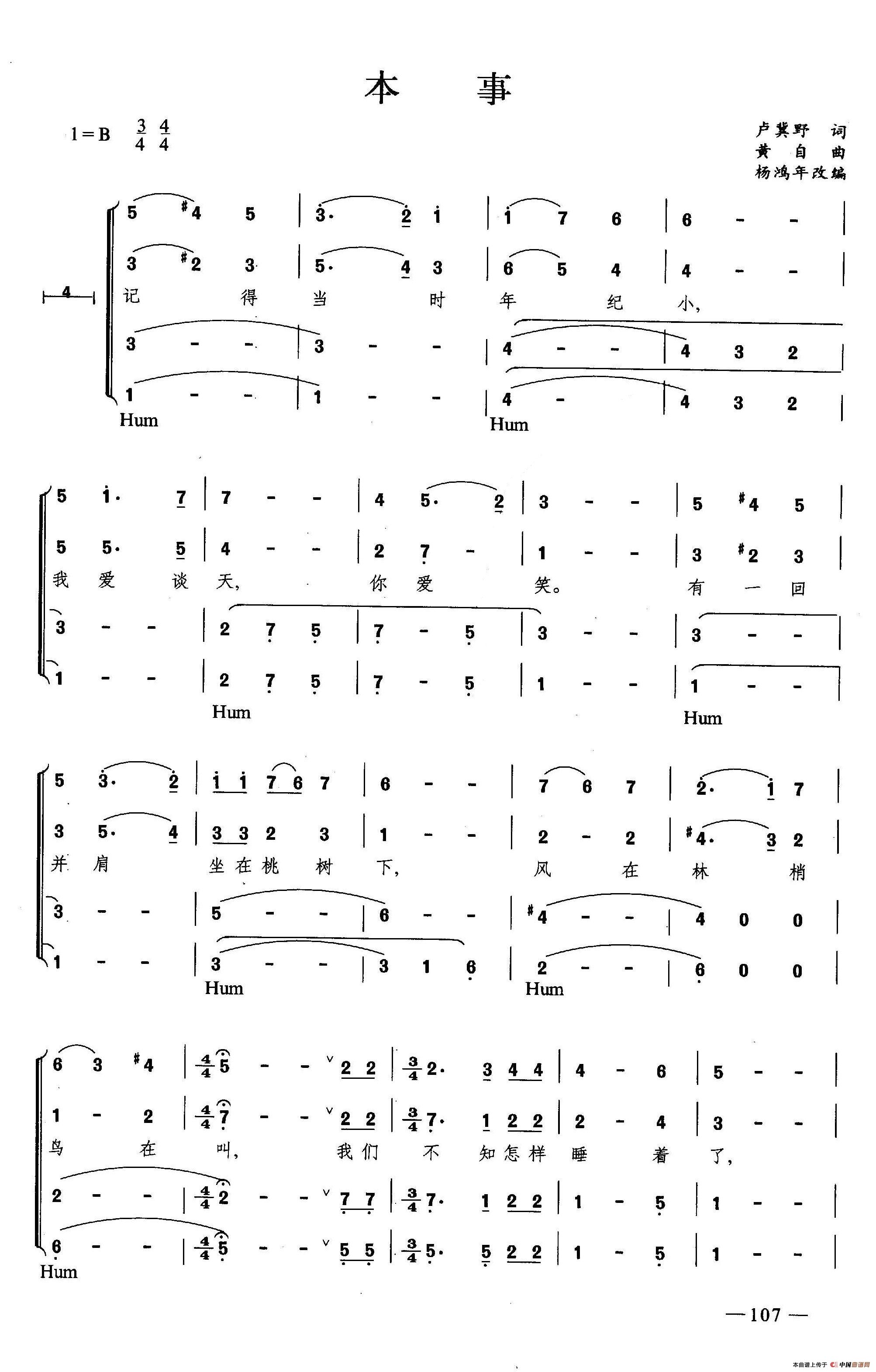 《本事(合唱)》文本歌词