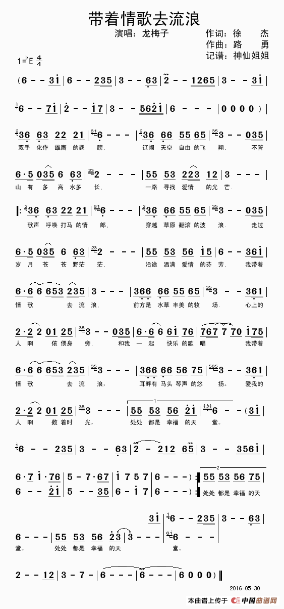 作词:徐杰   作曲:路勇   演唱(奏):龙梅子   来源:谱友神仙姐姐上传   上传:神仙姐姐   日期:2016-05-31   浏览次数: