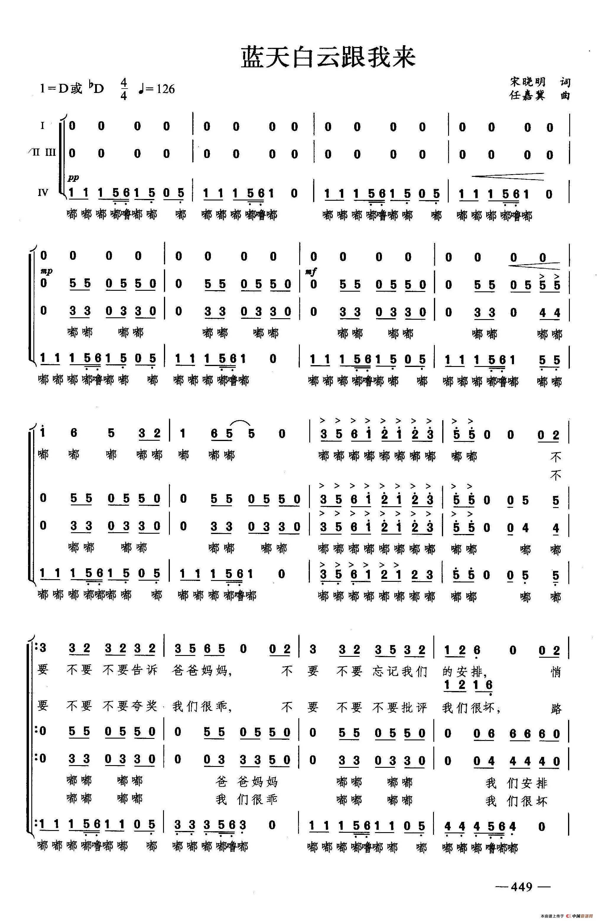 《蓝天白云跟我来(合唱)》文本歌词