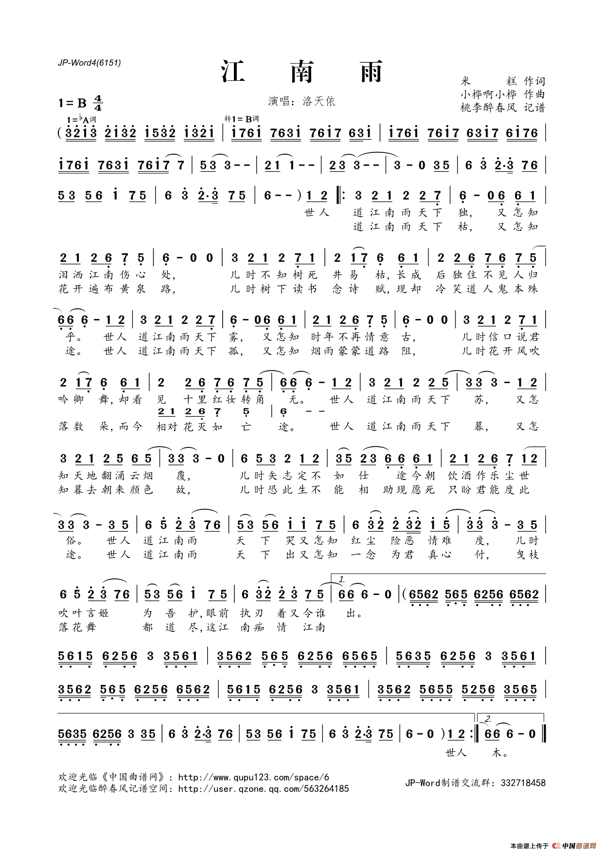 《江南雨》文本歌词