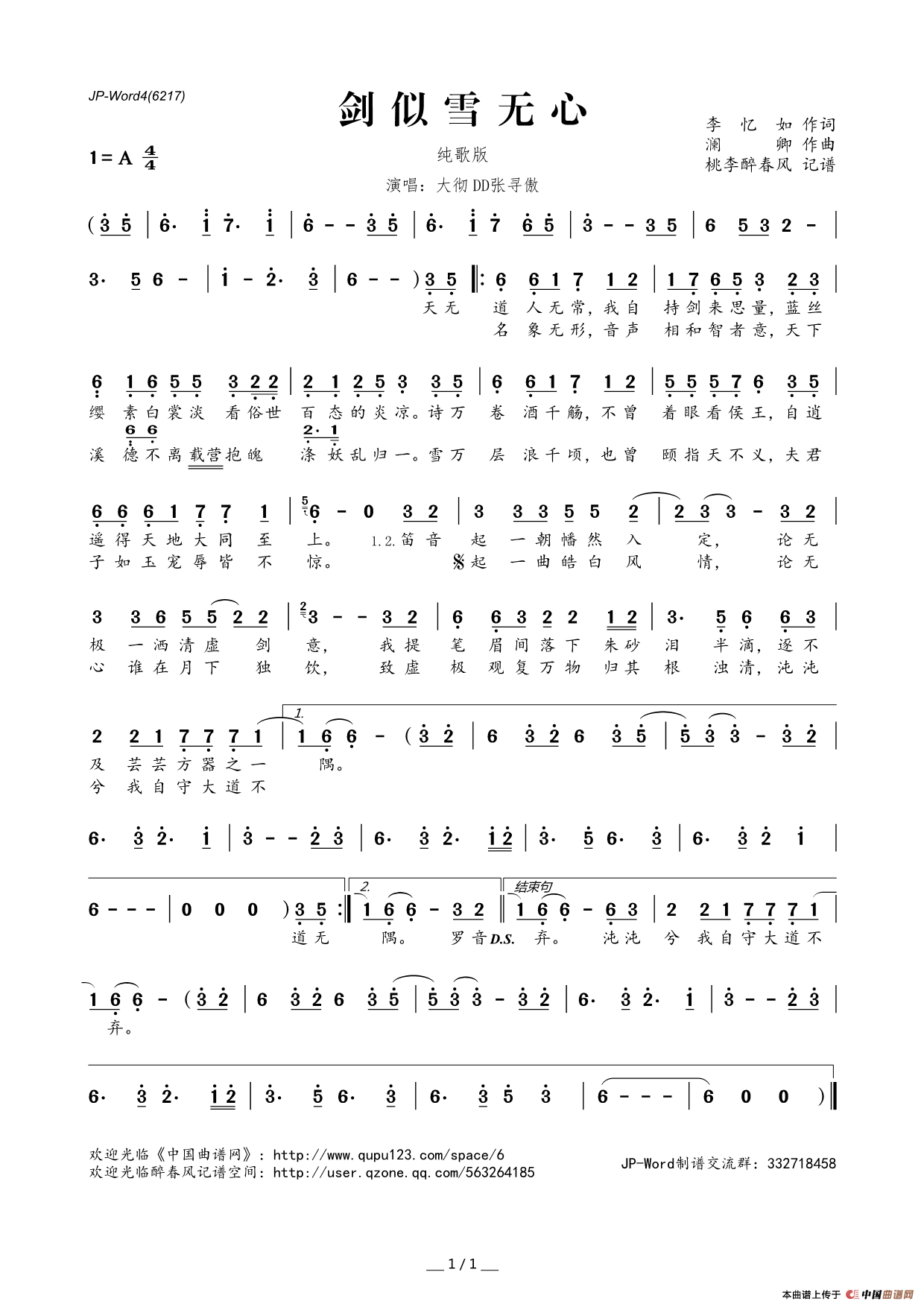 《剑似雪无心》文本歌词