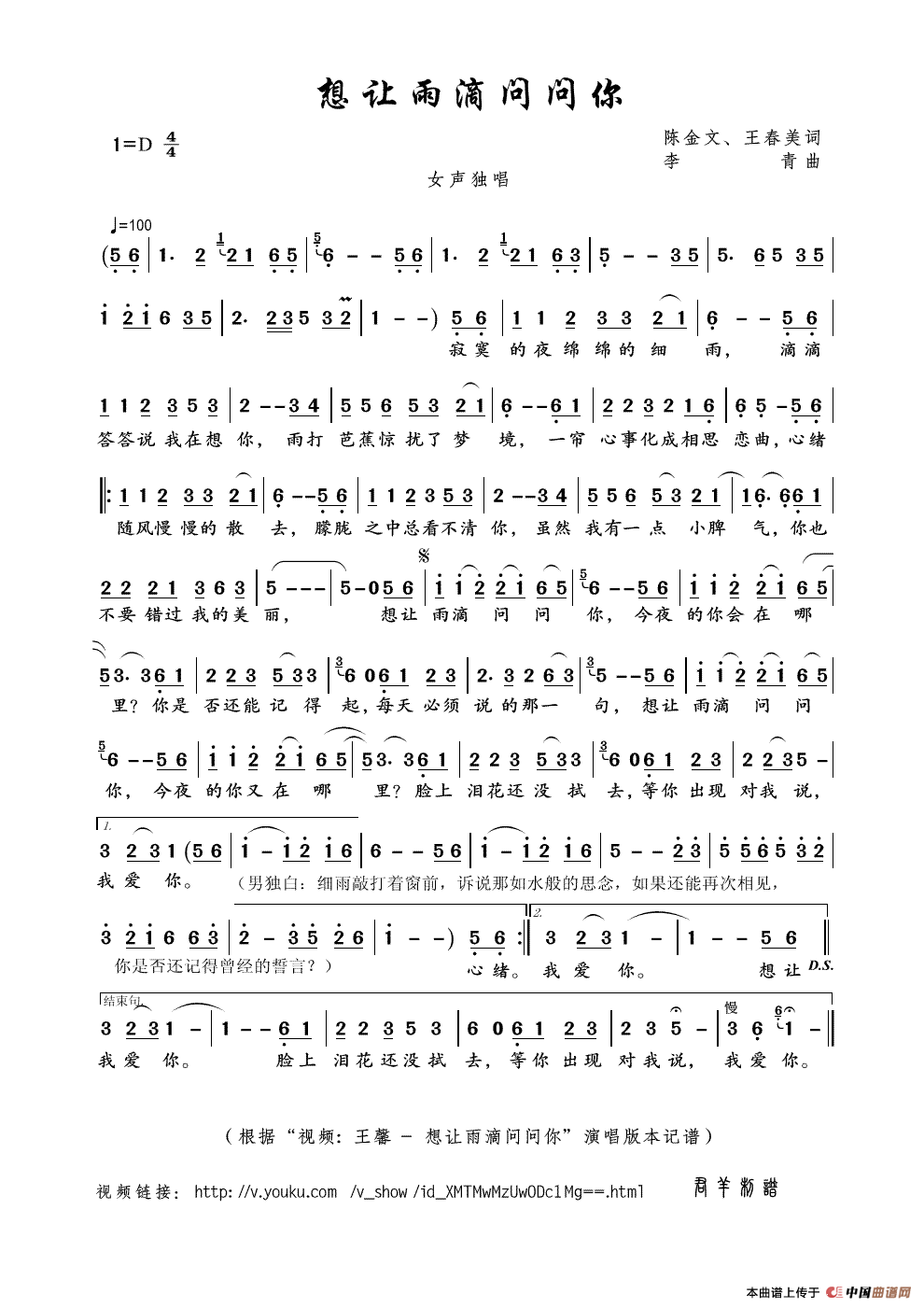 想让雨滴问问你(陈金文、王春美词 李青曲)