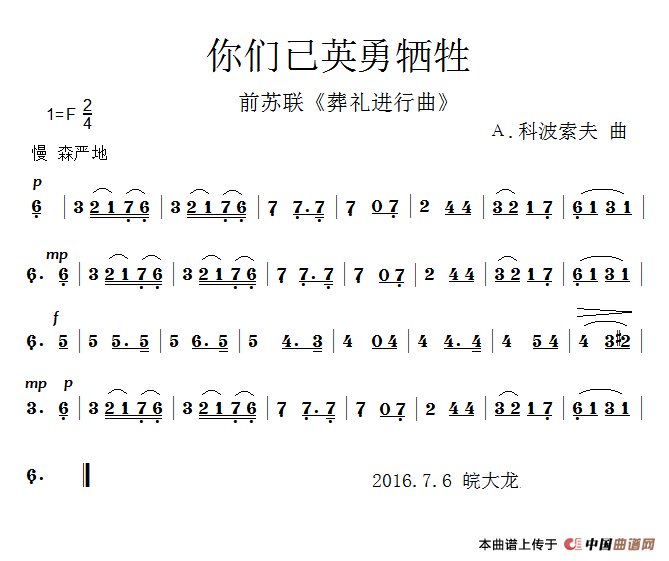 ![[前苏联]你们已英勇牺牲 (葬礼进行曲)(1)_原文件名:你们已英勇牺牲 A.科波索夫曲.png](/Public/Uploads/2016/07/06/157356577d28f7117d4.png)