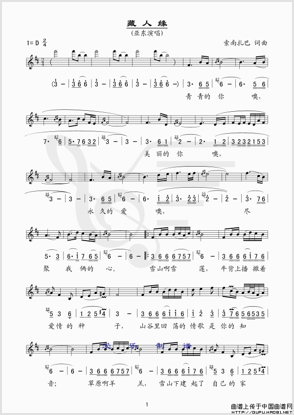 藏人缘(线、简谱混排版)(1)_原文件名:藏人缘1.gif