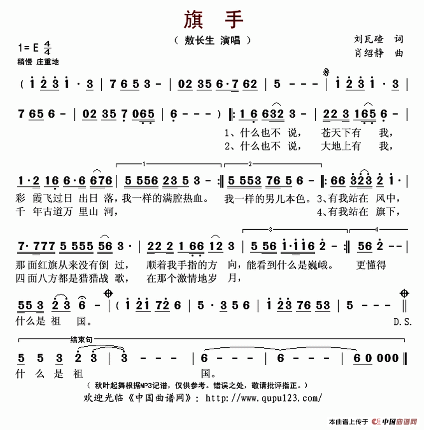作词:刘瓦碴 作曲:肖绍静 演唱:敖长生