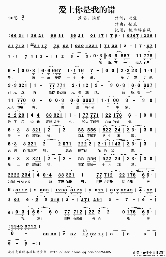 关于《爱上你是我的错》曲谱的评论