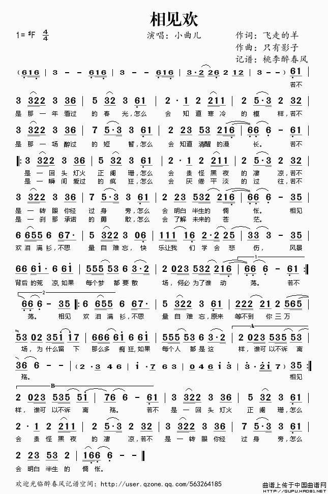 作词:飞走的羊   作曲:只有影子   演唱(奏):小曲儿   格式:简谱   来源:桃李醉春风记谱   上传:桃李醉春风   日期:2011-01-25   浏览次数: