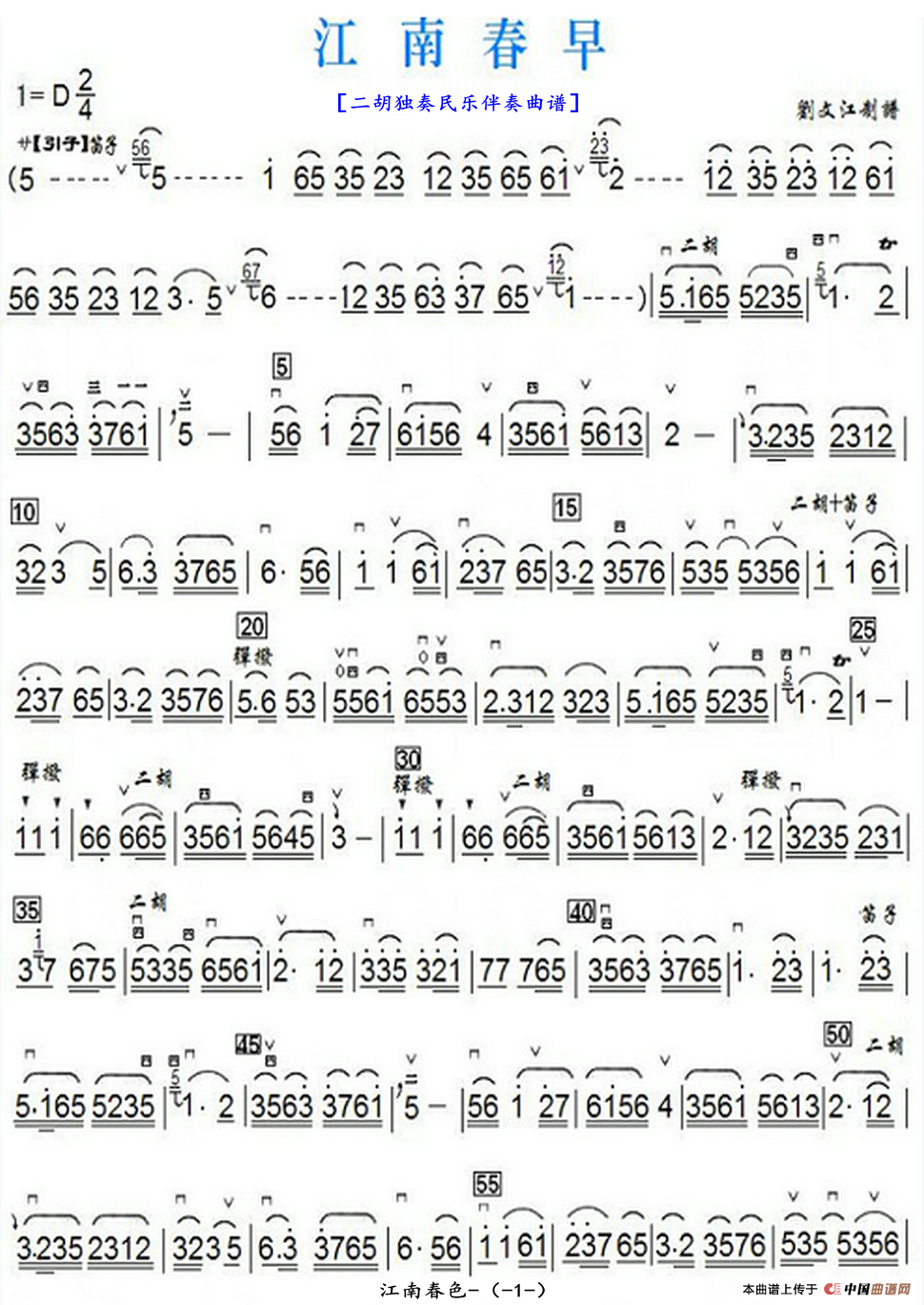 江南春早(二胡独奏民乐伴奏双页版)
