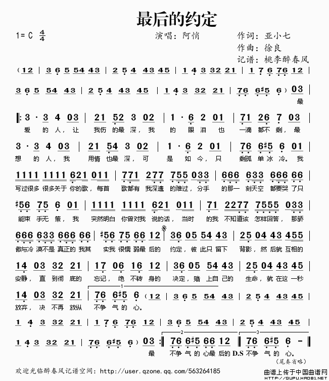作词:亚小七   作曲:徐良   演唱(奏):阿悄   格式:简谱   来源:桃李醉春风记谱   上传:桃李醉春风   日期:2011-02-02   浏览次数: