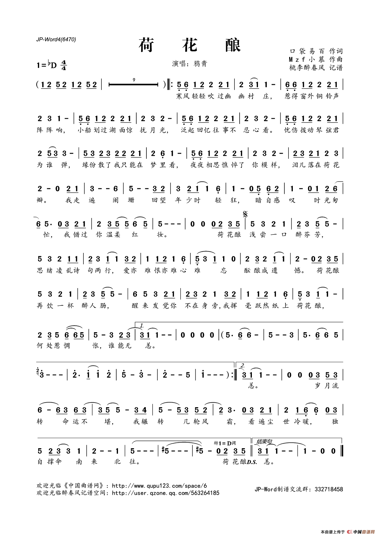 荷花酿 再饮一杯醉人肠 醒来发觉你不在身旁