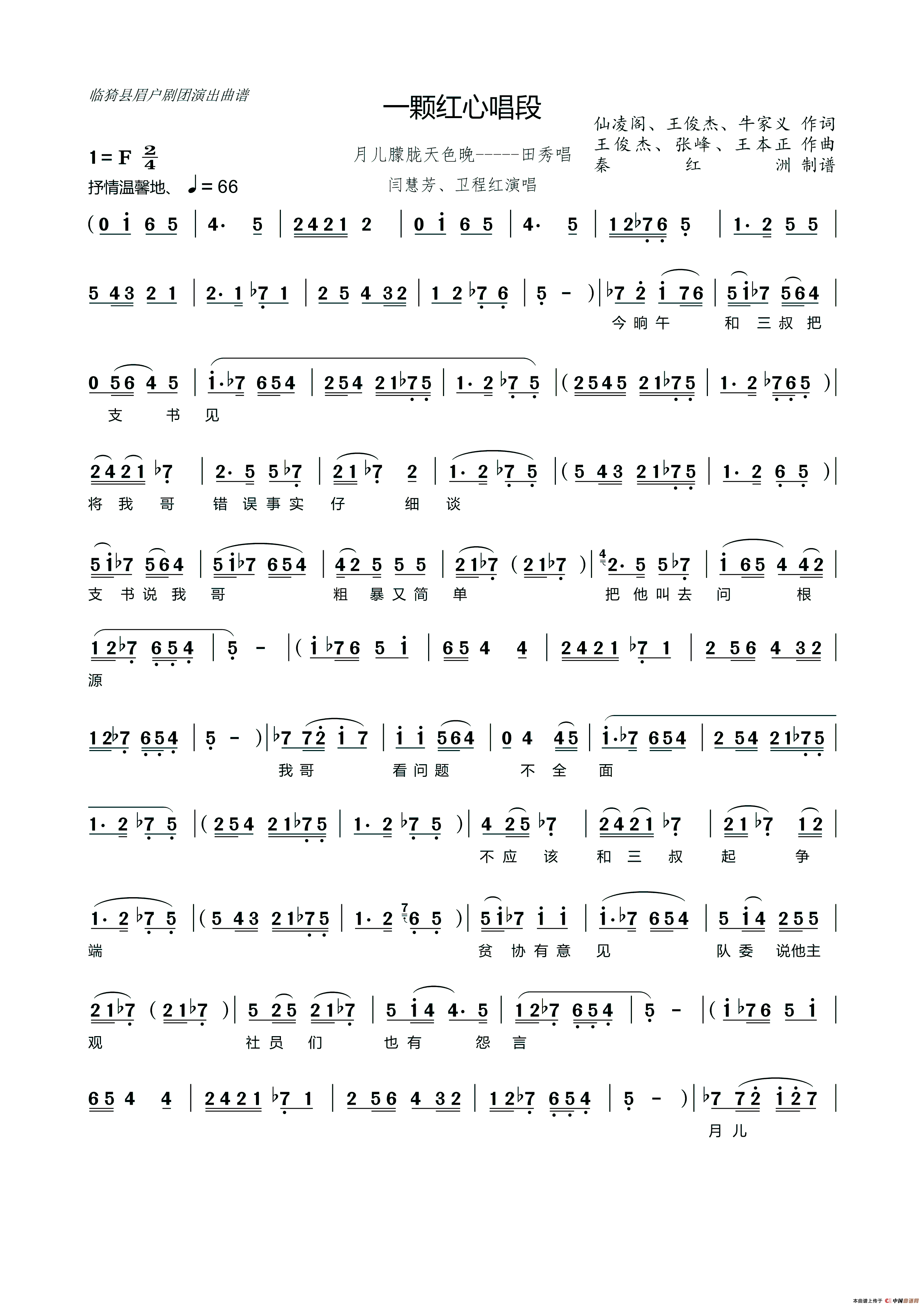 关于《[眉户]月儿朦天夜色晚》曲谱的评论