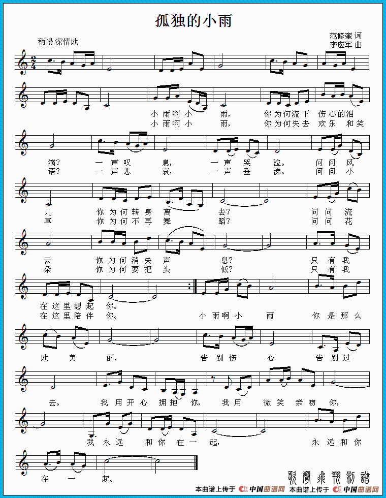 关于《孤独的小雨》曲谱的评论