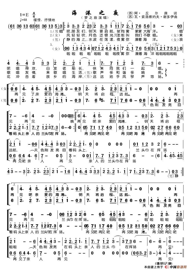 关于《海港之夜》曲谱的评论