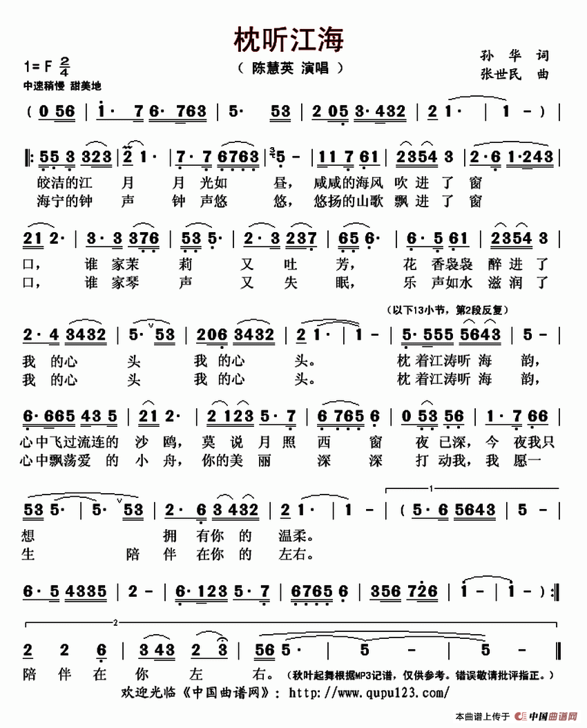枕听江涛(孙华词 吴克敏曲)