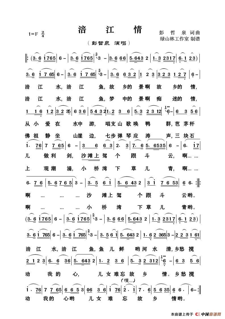 关于《涪江情》曲谱的评论