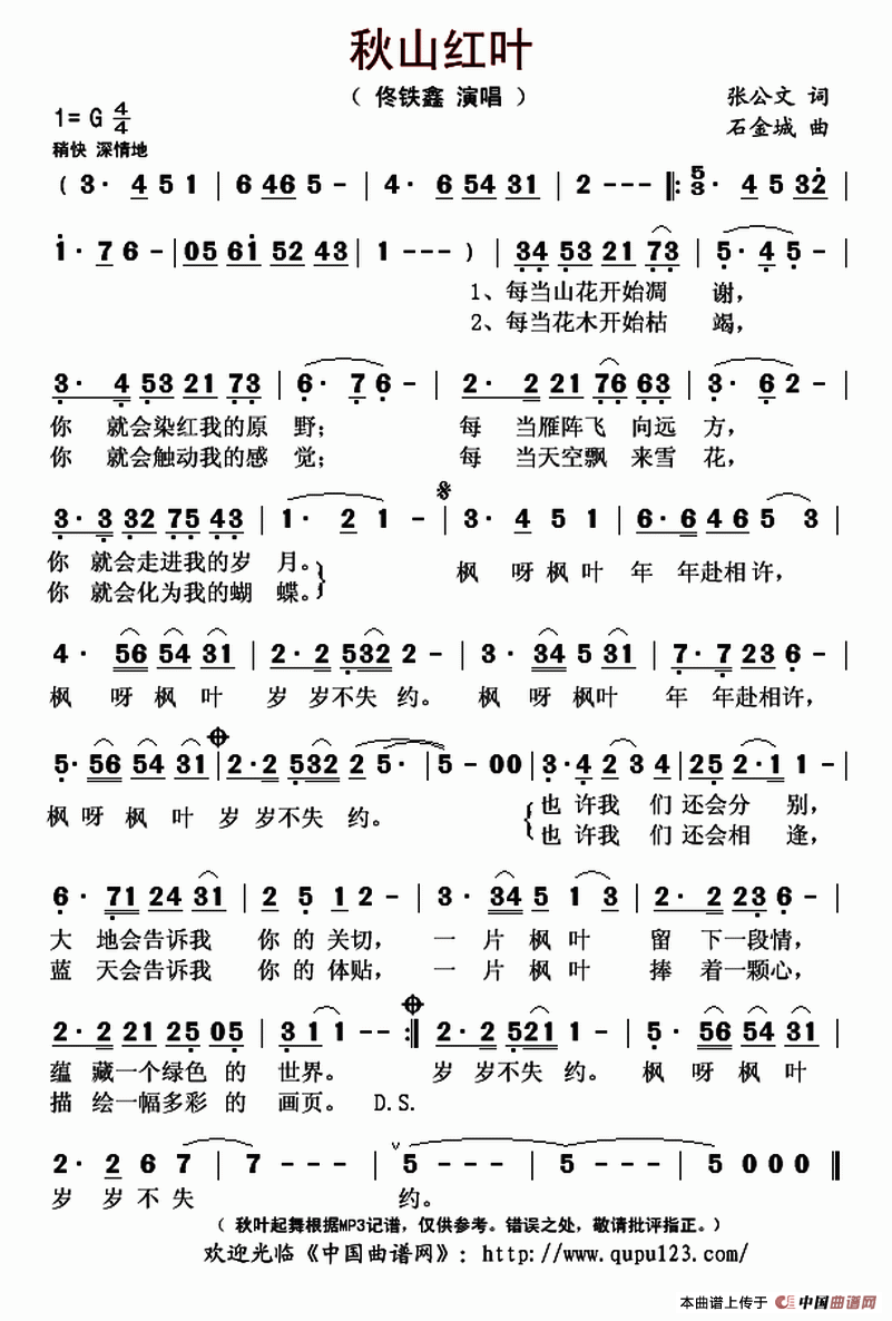关于《秋山红叶》曲谱的评论