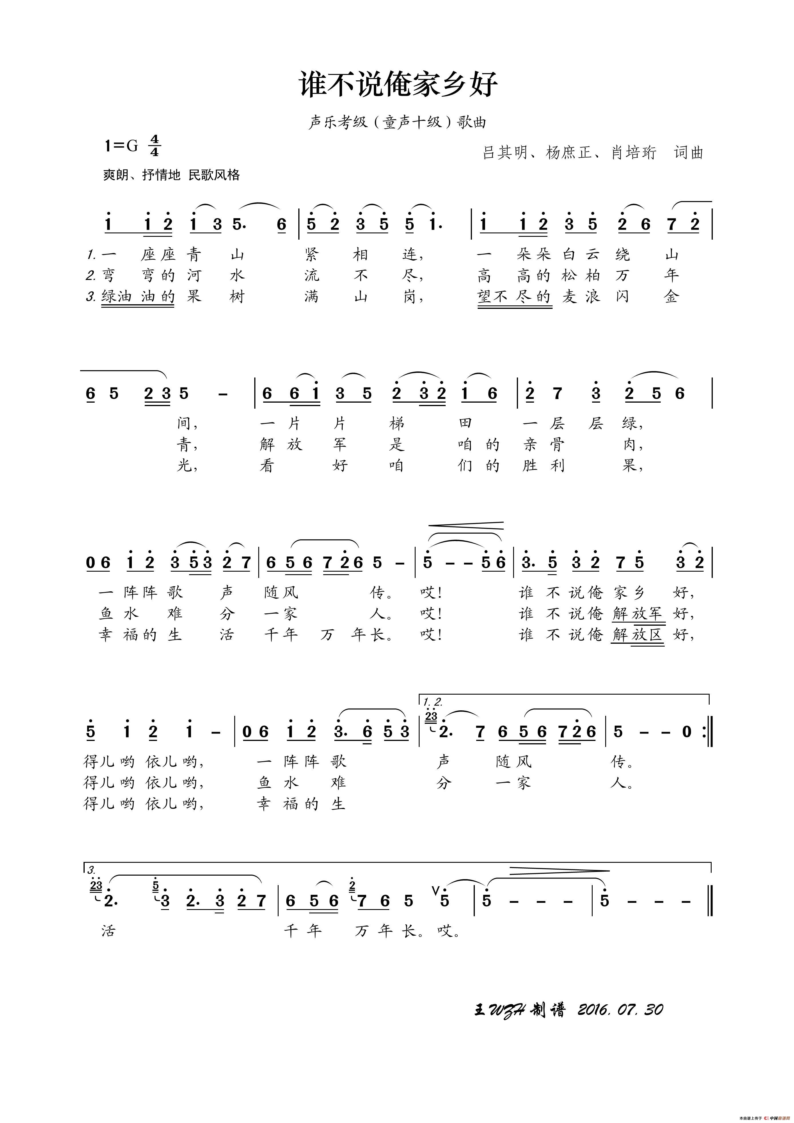 关于《声乐考级歌曲:谁不说俺家乡好》曲谱的评论