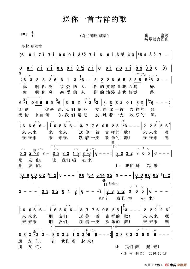 送你一首吉祥的歌(崔富词 斯琴朝克图曲)