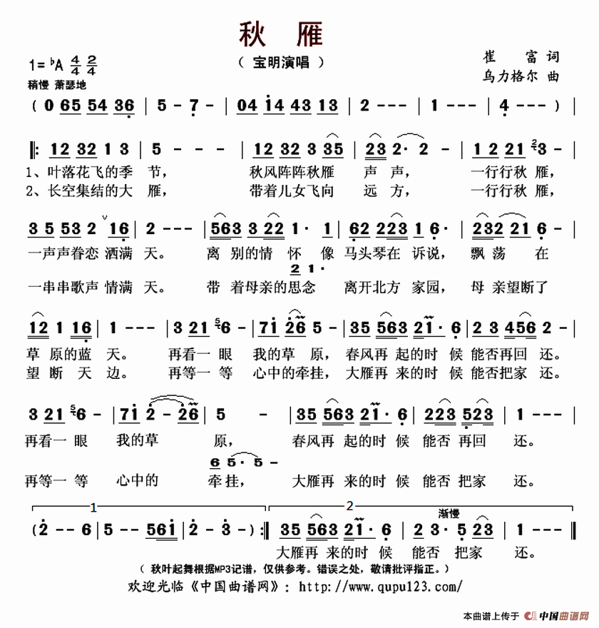 作词 崔富 作曲 乌力格尔 演唱 宝明