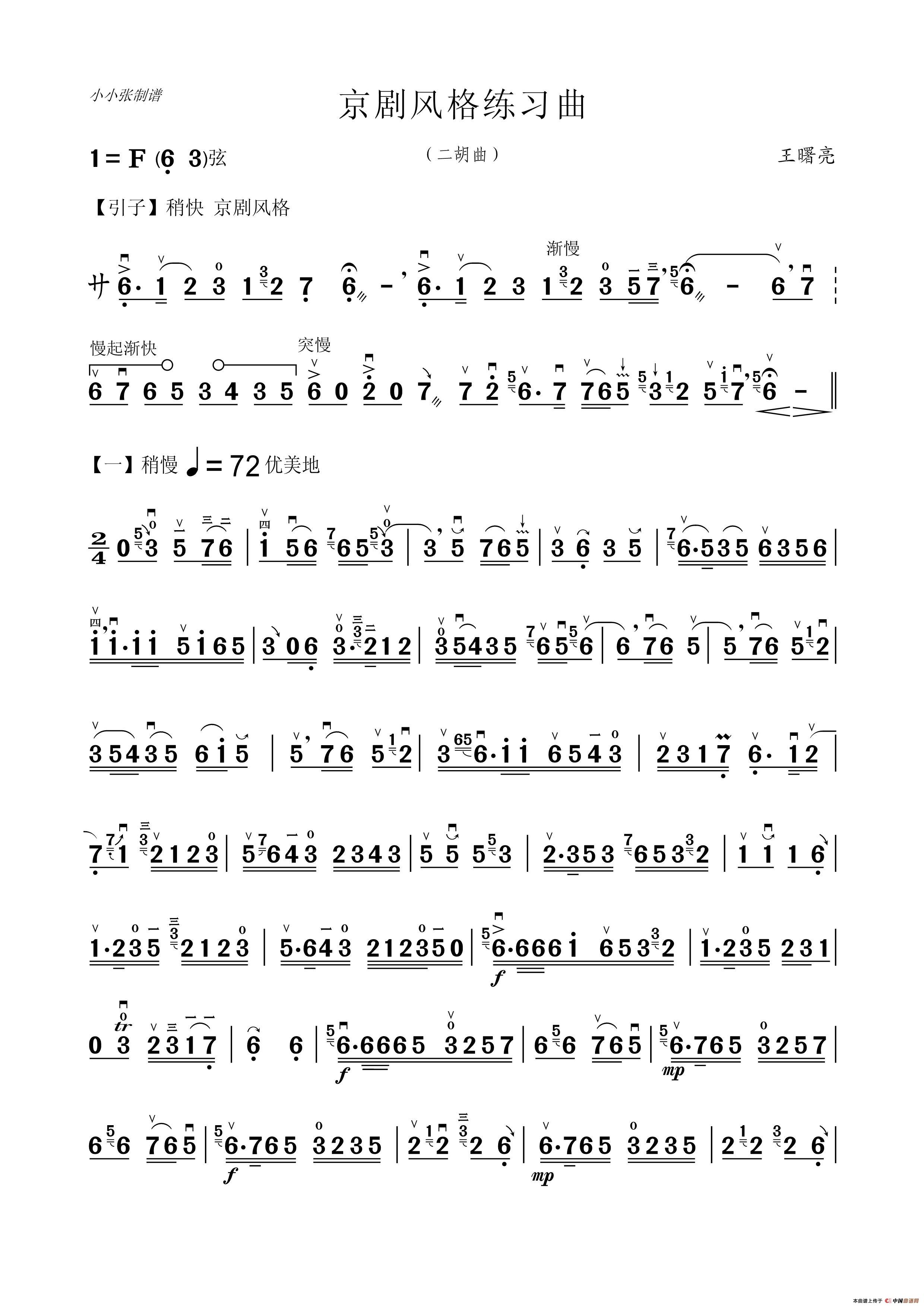 京剧风格练习曲(二胡曲)