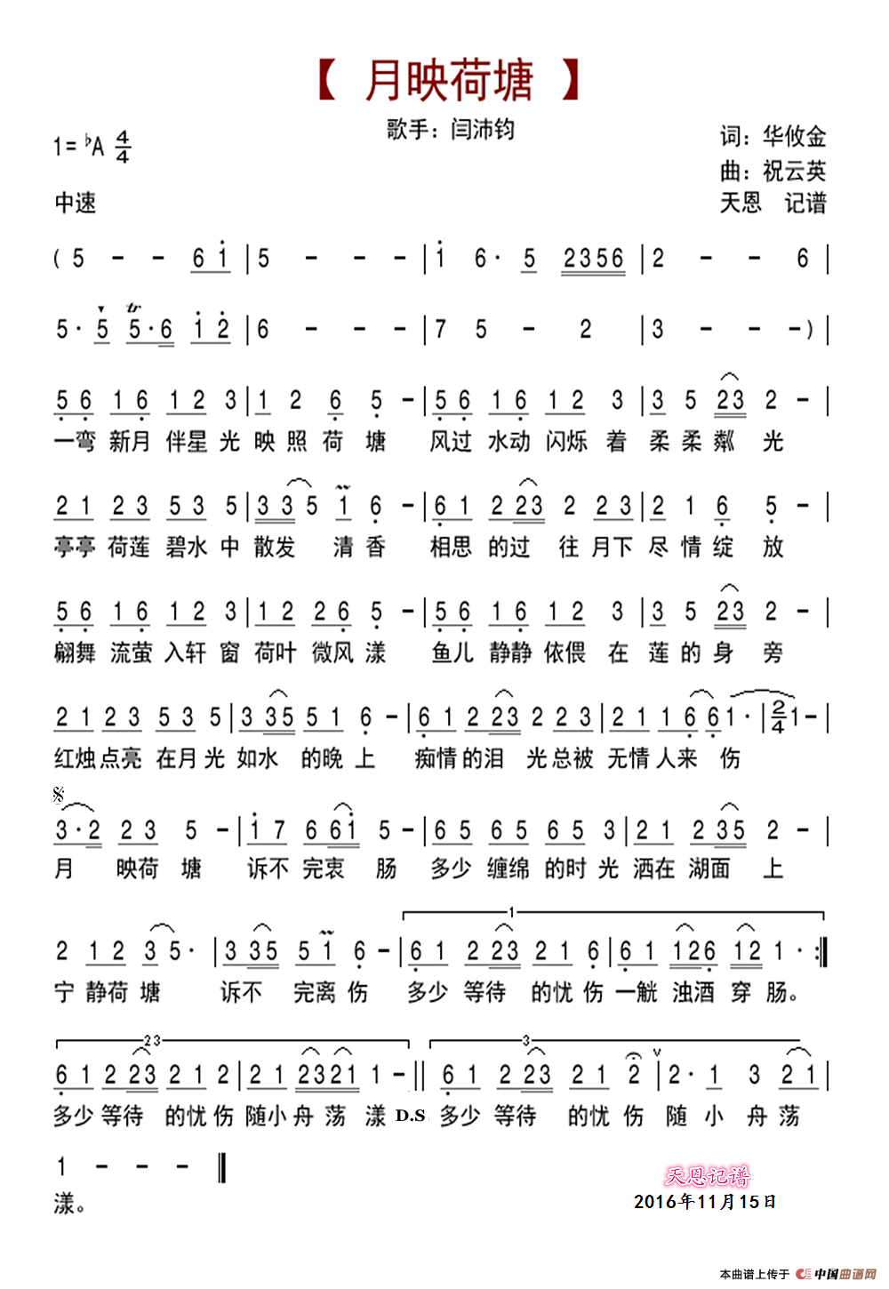 提示:在曲谱图片上单击右键,选择"图片另存为..."即可将曲谱保存到您的电脑中,打印时候可将图片插入到WORD中,调整合适大小打印即可。