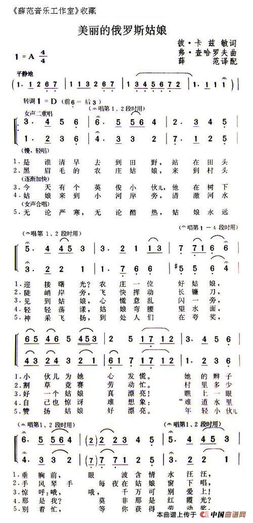 关于《美丽的俄罗斯姑娘》曲谱的评论