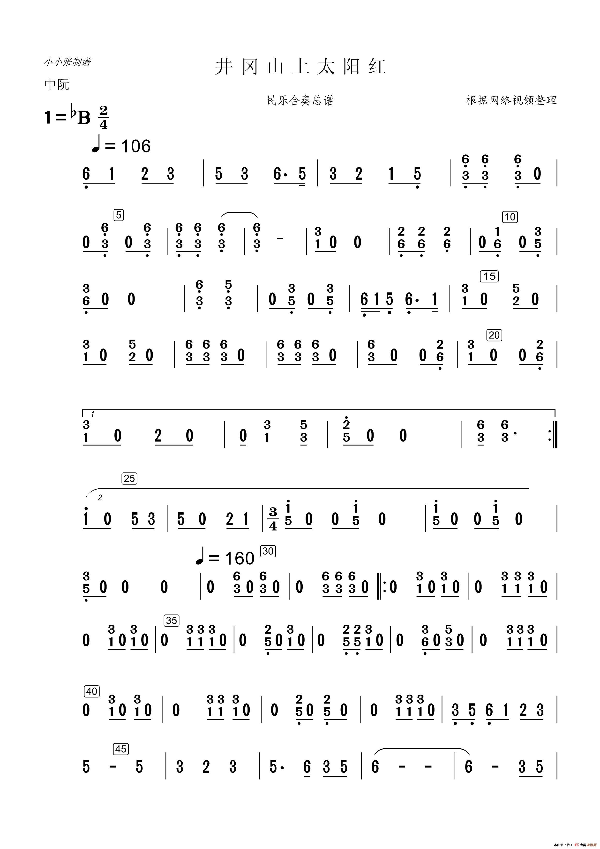 井冈山上太阳红(民乐合奏中阮分谱)