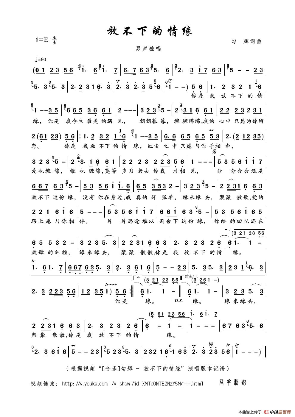 关于《放不下的情缘》曲谱的评论