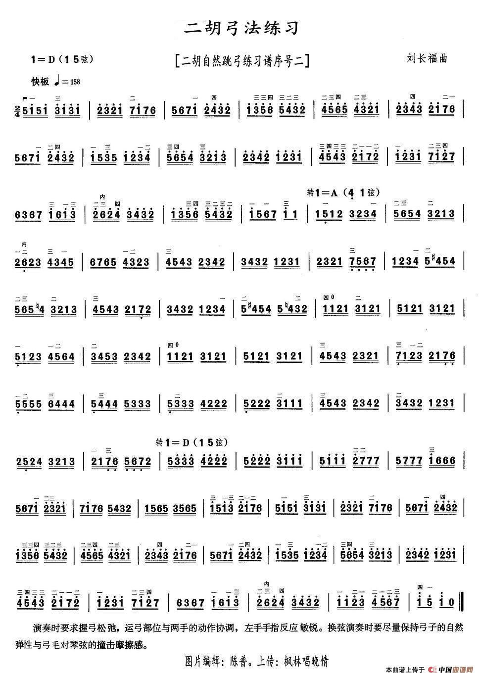 二胡弓法练习(二胡自然跳弓练习谱序号二)