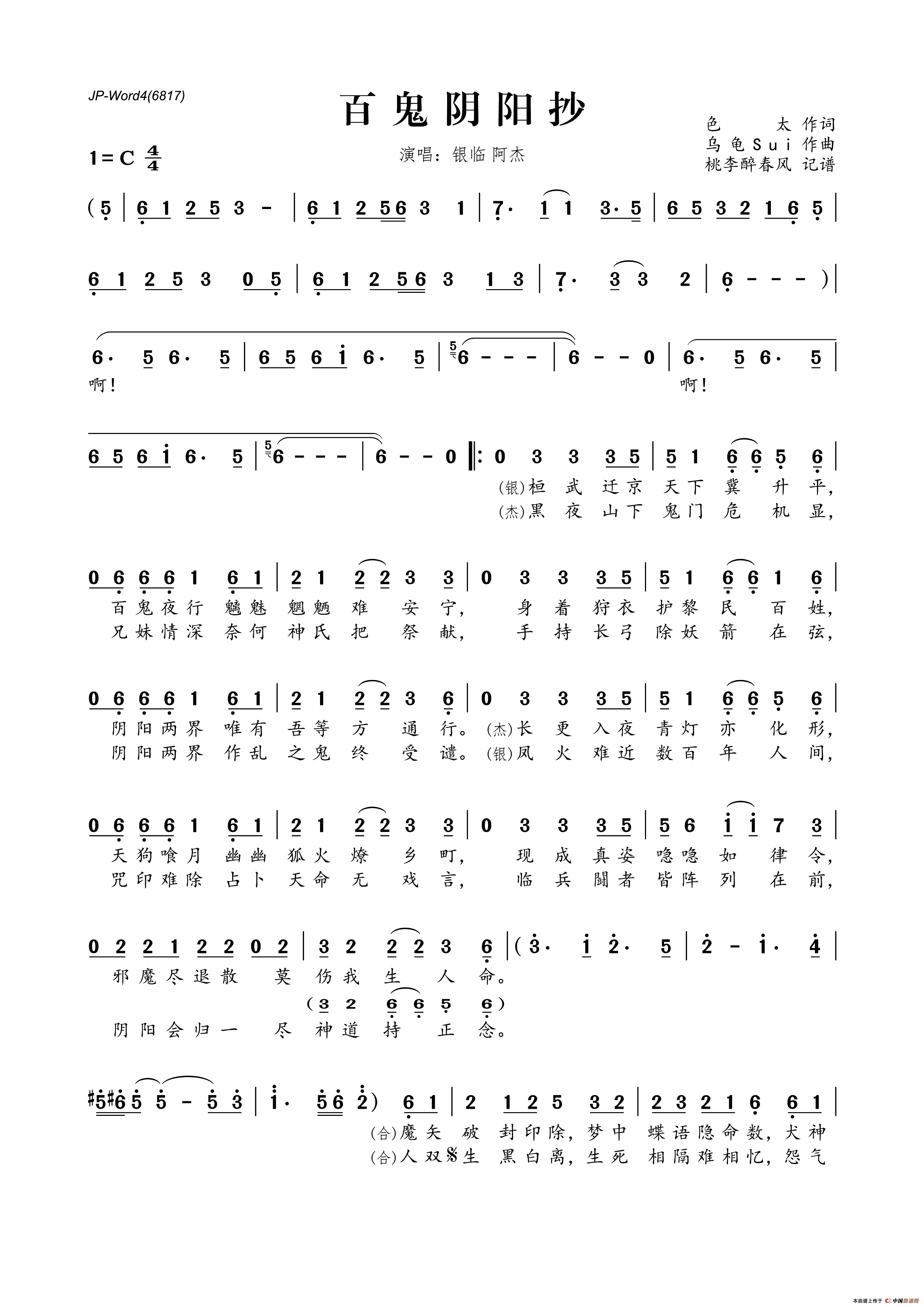 《百鬼阴阳抄》文本歌词
