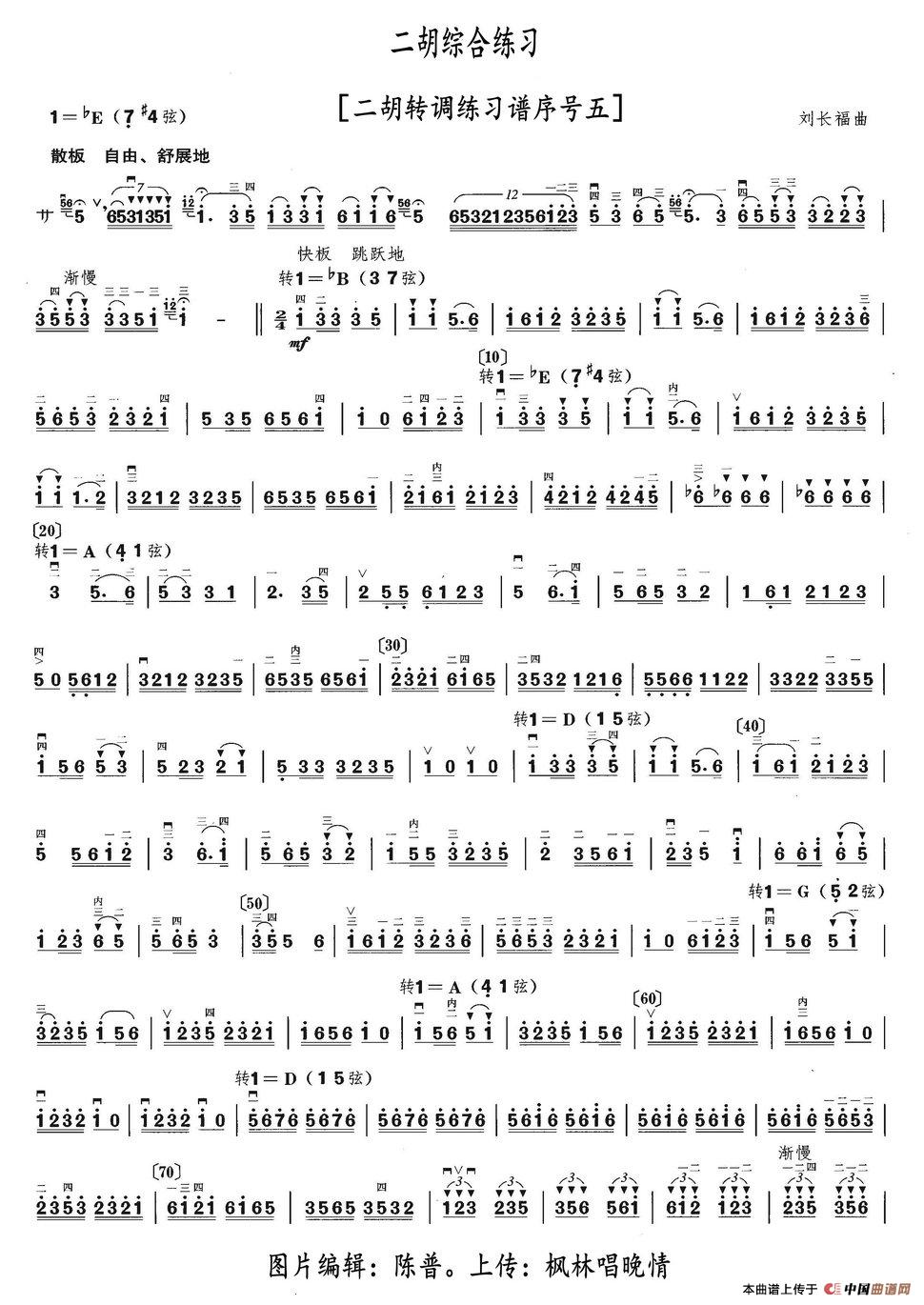 二胡综合练习(二胡转调练习谱序号五)