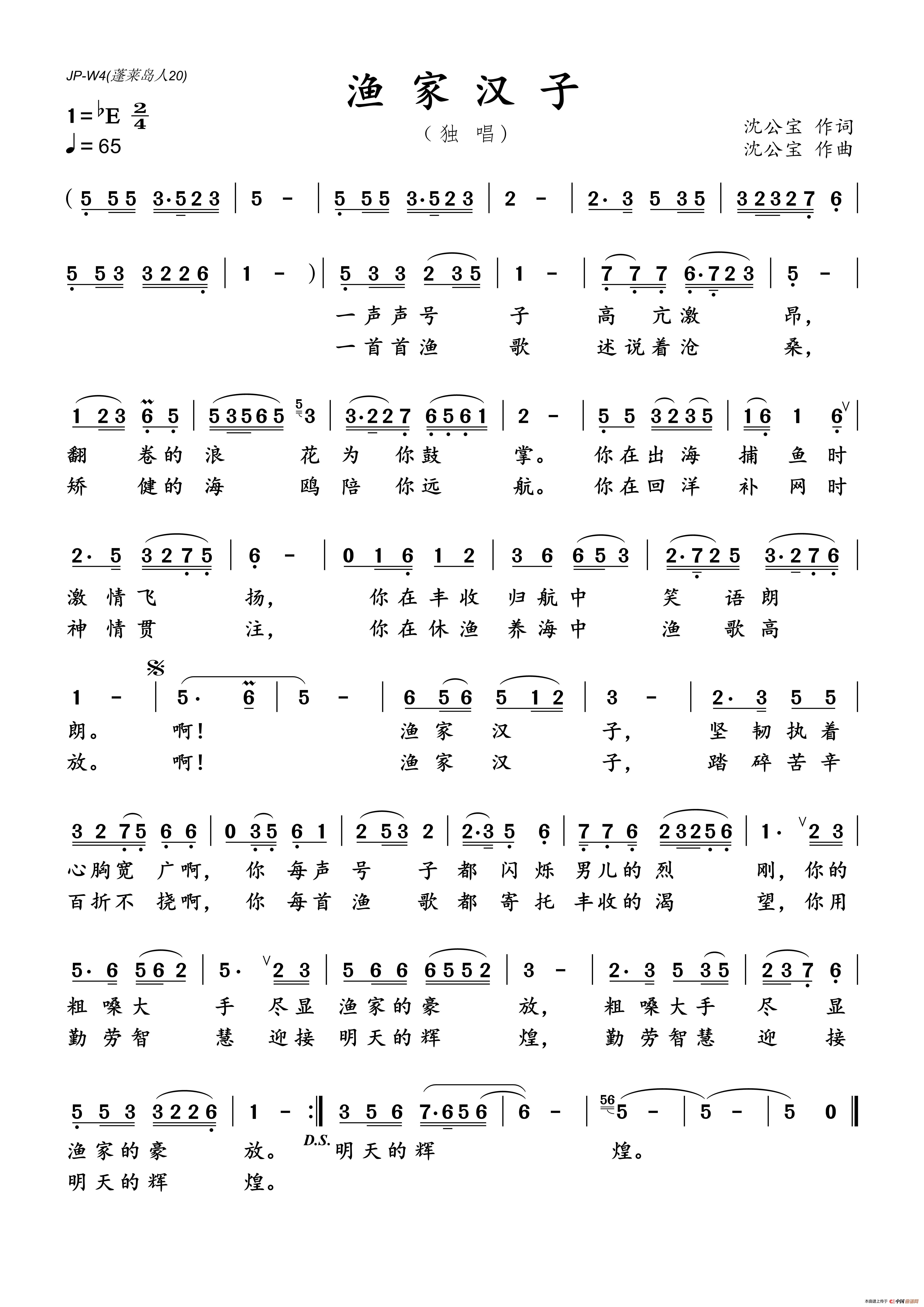 《渔家汉子》文本歌词