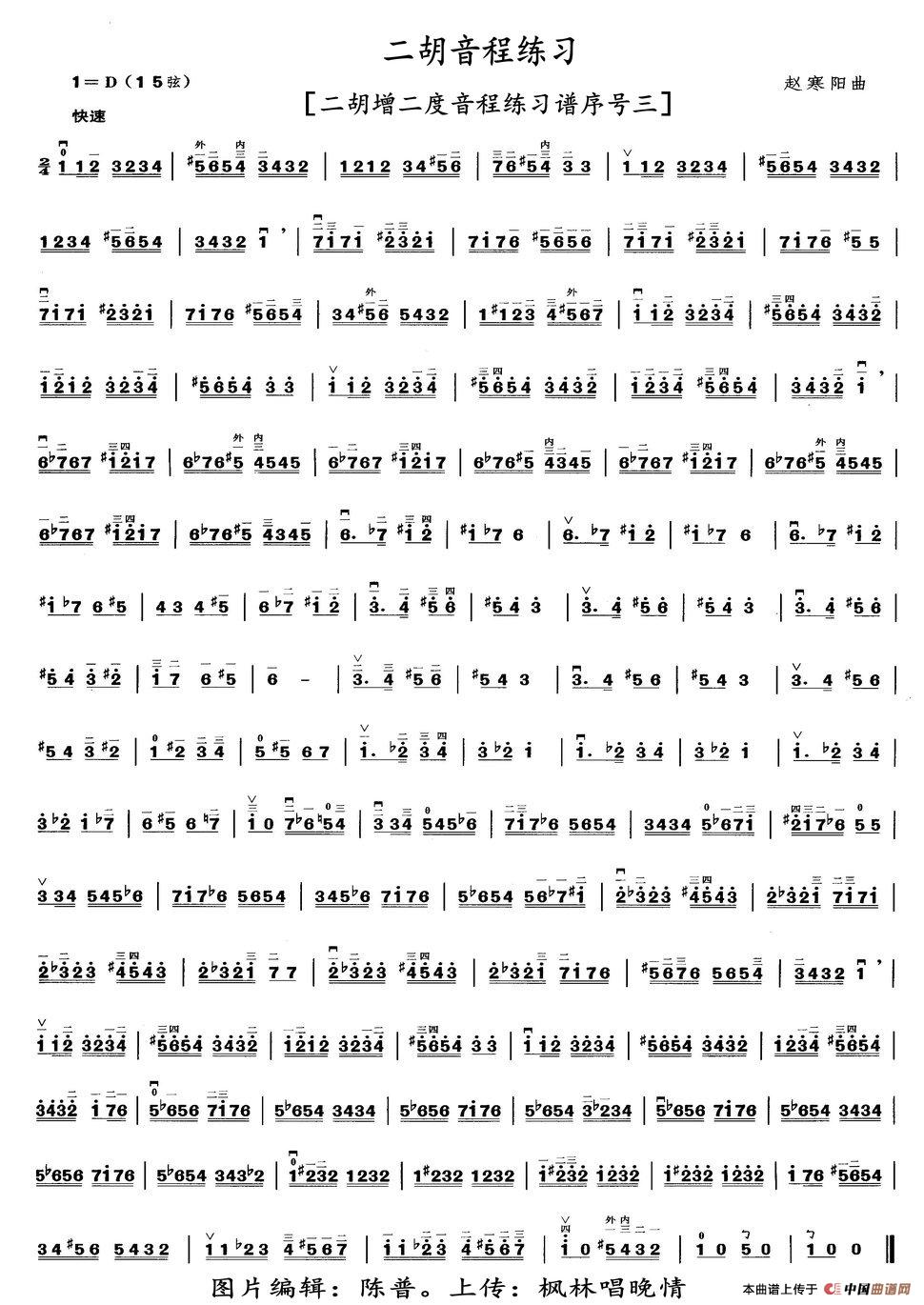 二胡音程练习(二胡增二度音程练习谱序号三)