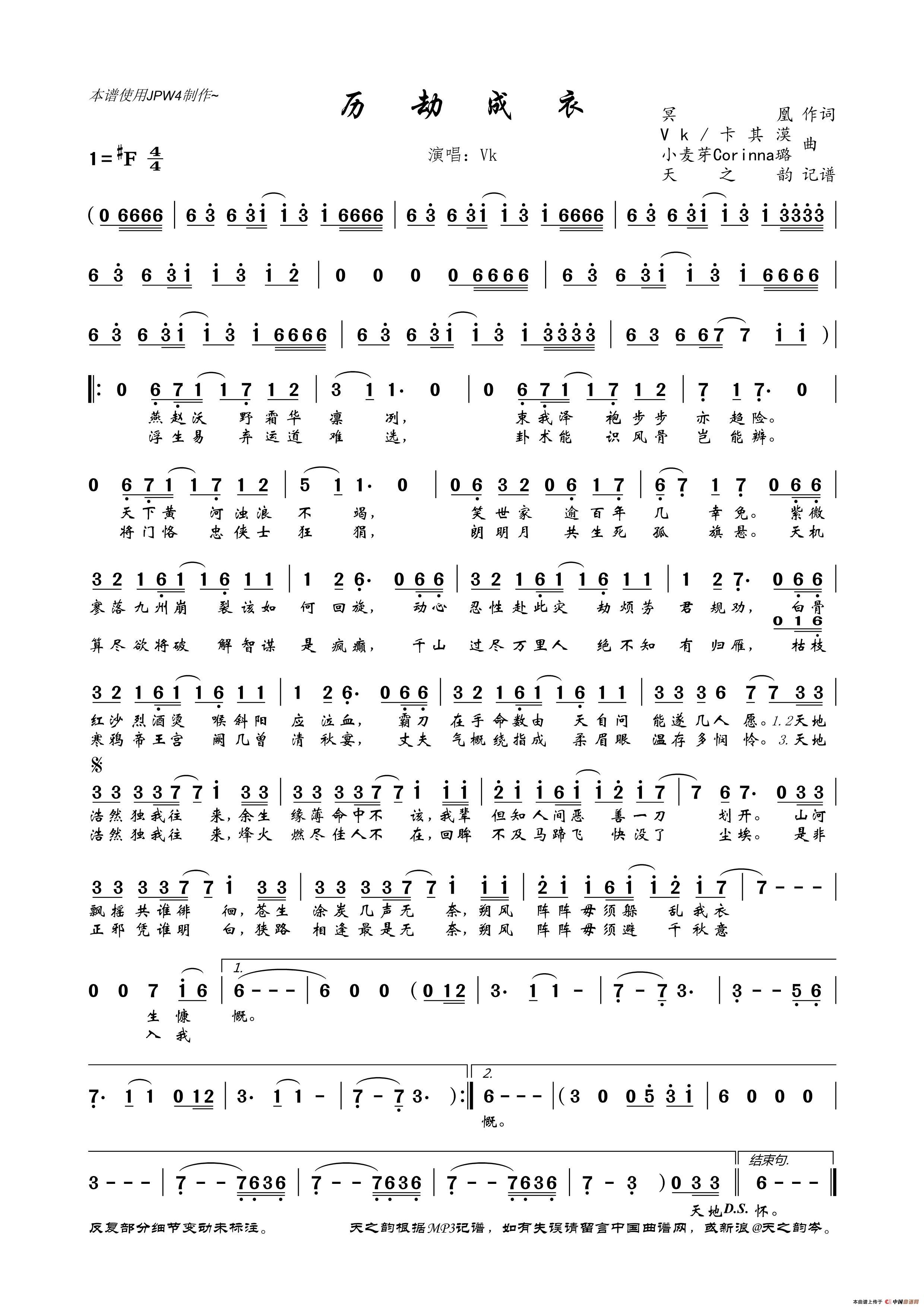 关于《历劫成衣》曲谱的评论