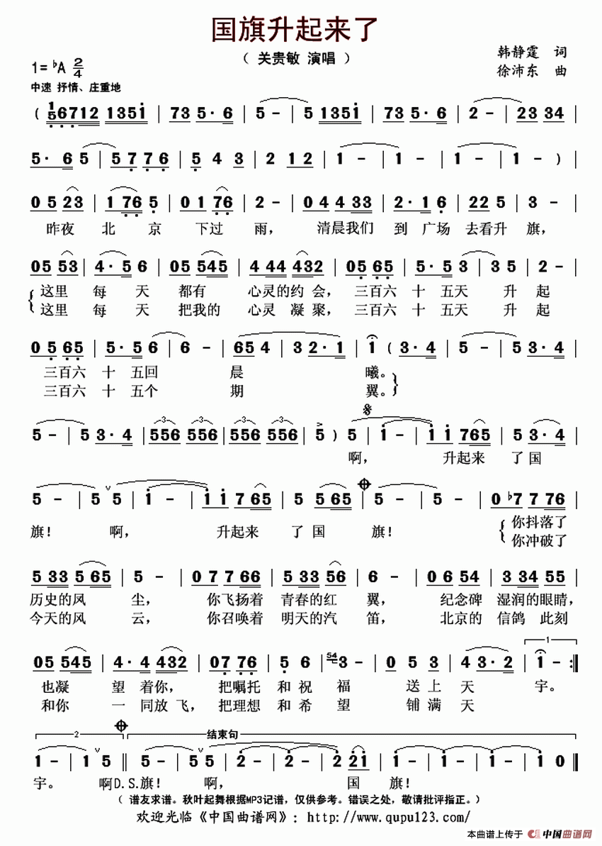 关于《国旗升起来了》曲谱的评论