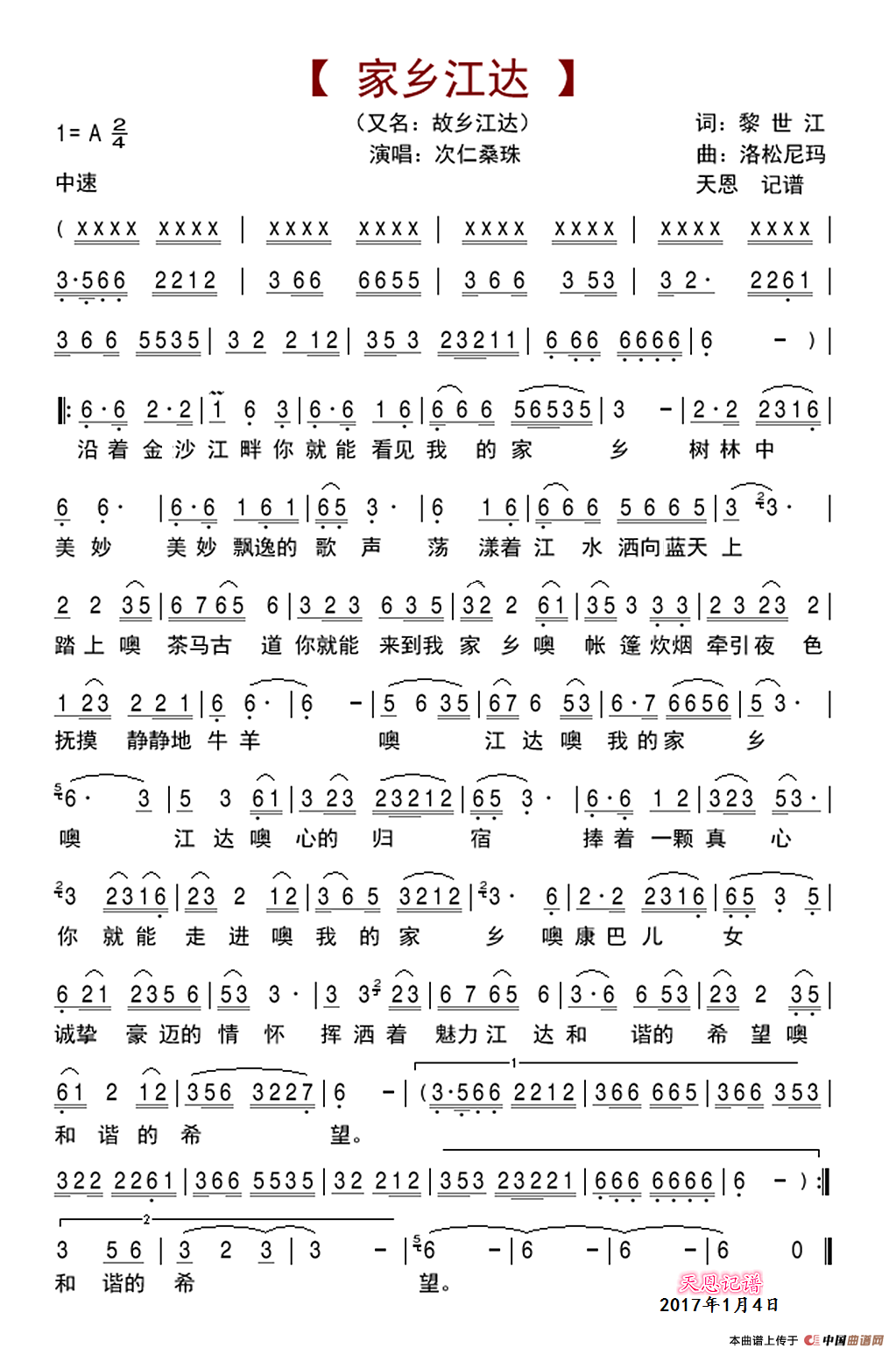 歌名:家乡江达
