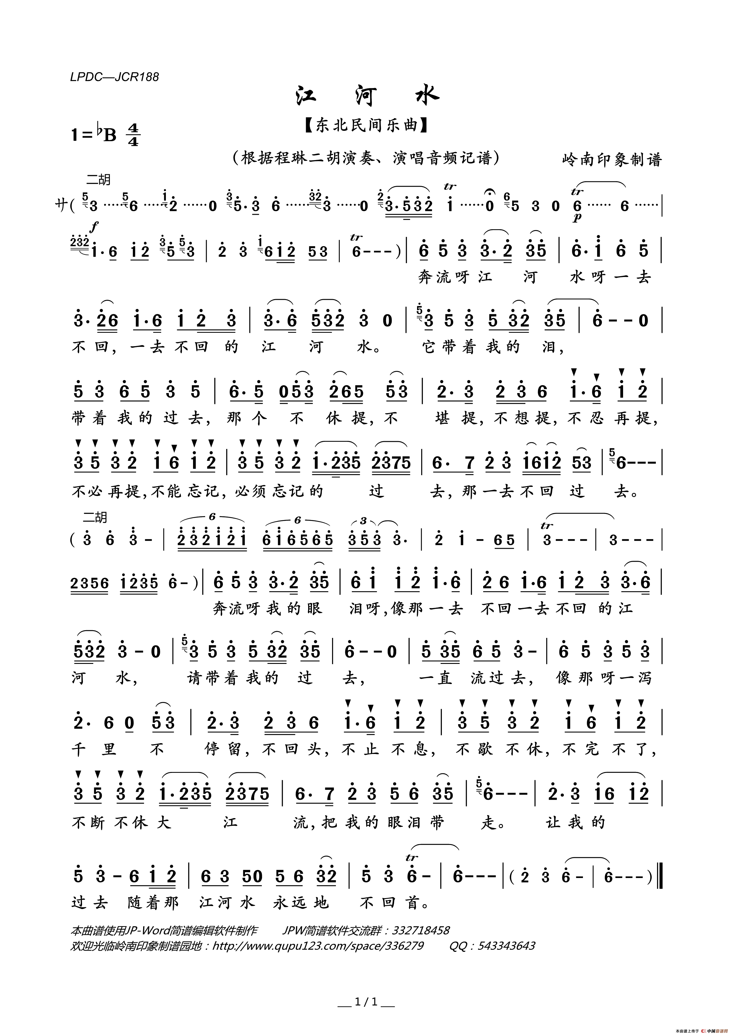 关于《江河水》曲谱的评论