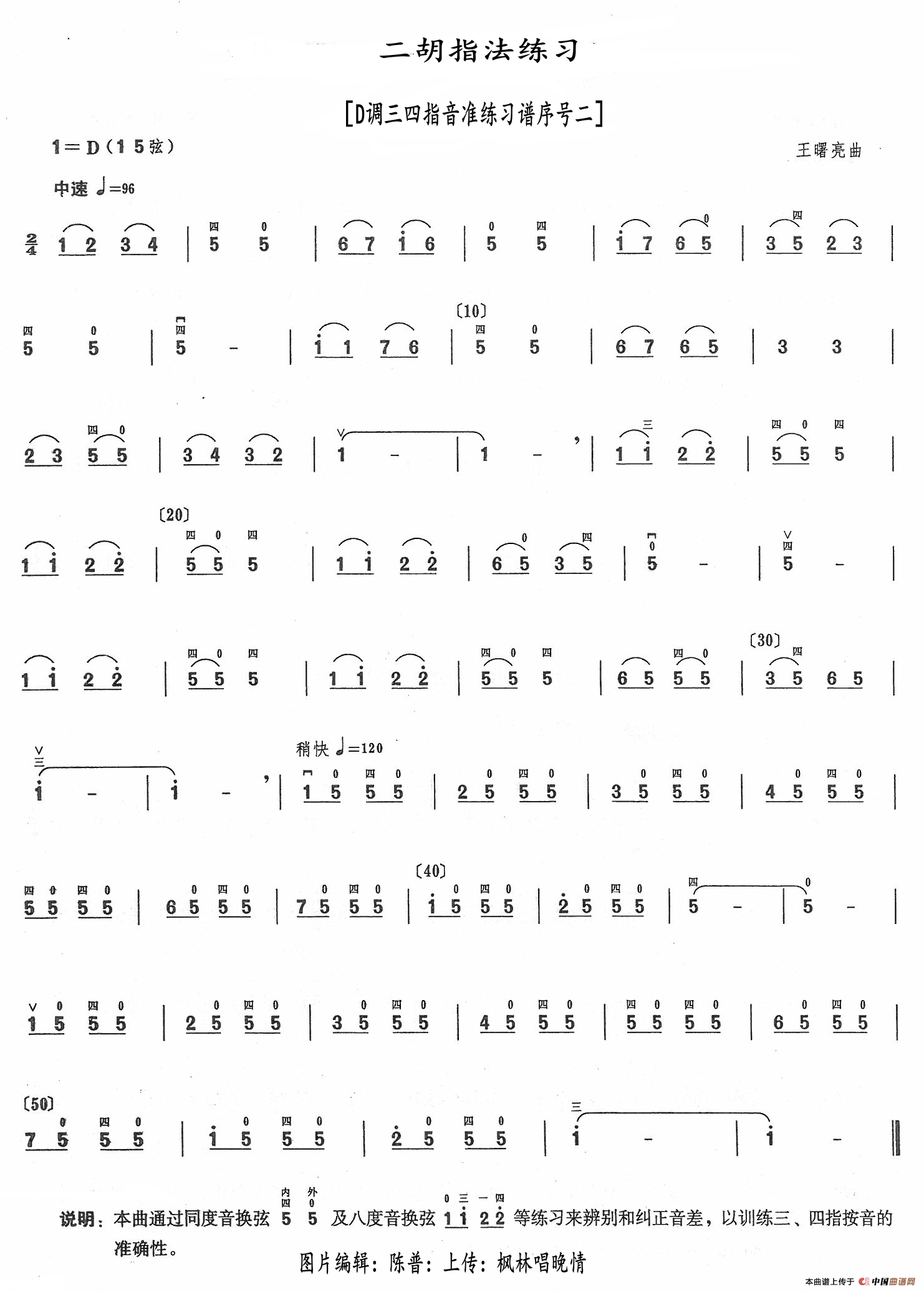 二胡指法练习(D调三,四指音准练习谱序号二)