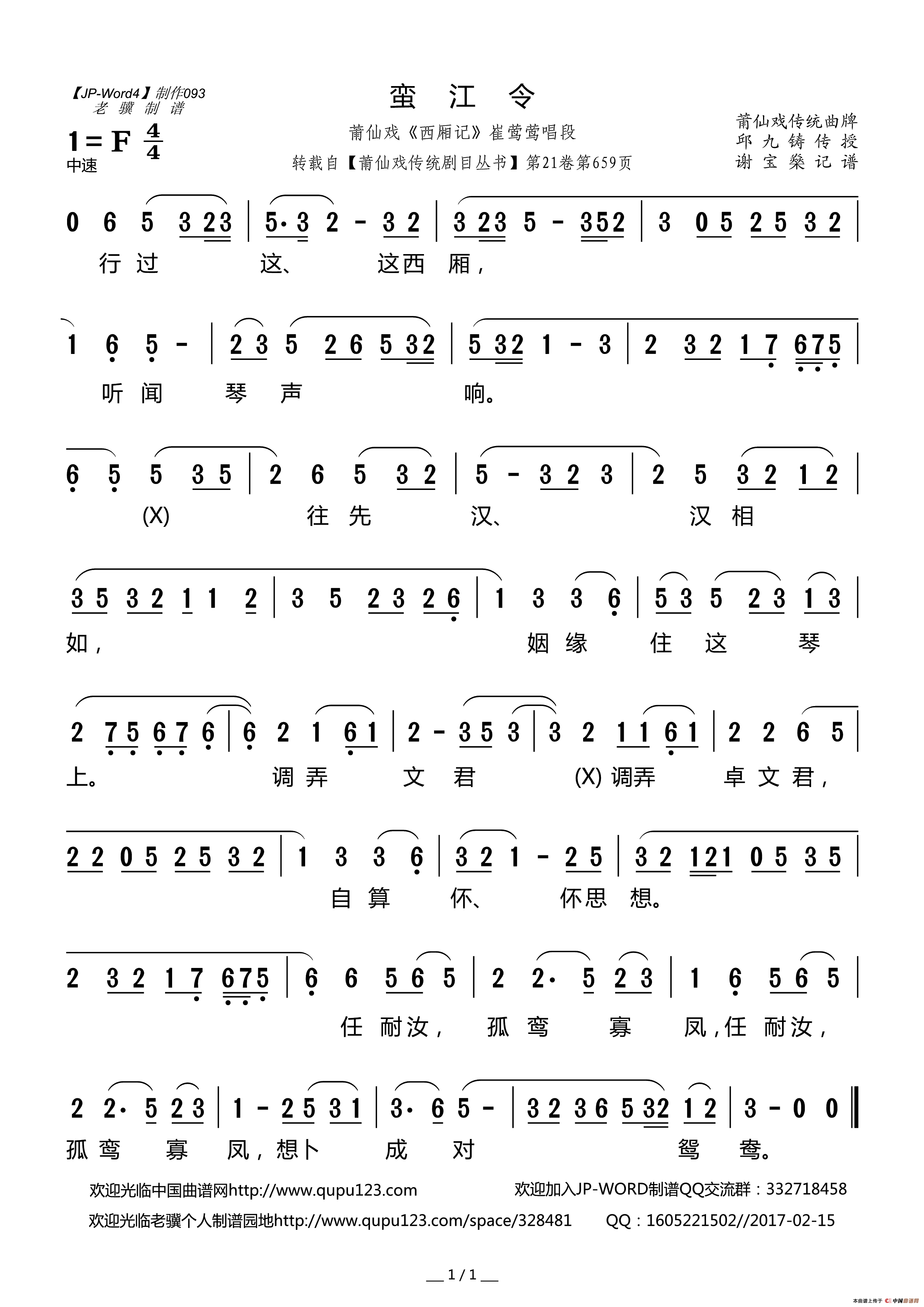 关于《[莆仙戏]蛮江令》曲谱的评论